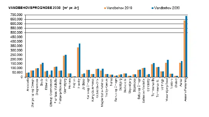 | Vandbehov | 2019 (m³ pr. år) | 2031 (m³ pr. år) | Ændring (%) |
